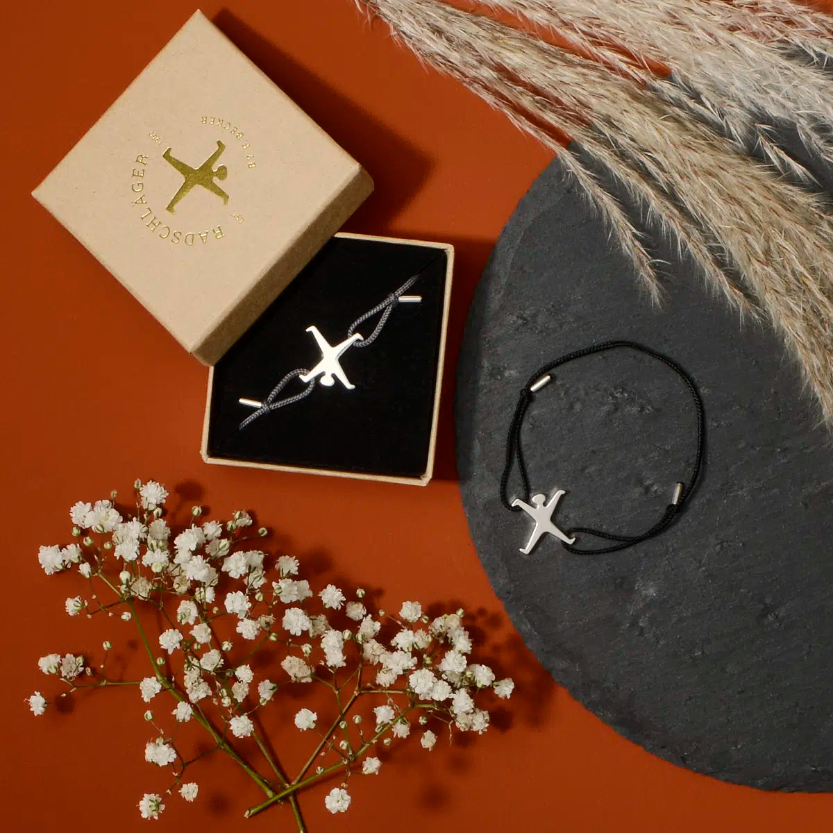Modisches Armband mit Radschläger-Charm aus unserer Radschläger-Kollektion, 925er Sterlingsilber, poliert. Ein Accessoire für heimatverbundene Düsseldorfer.