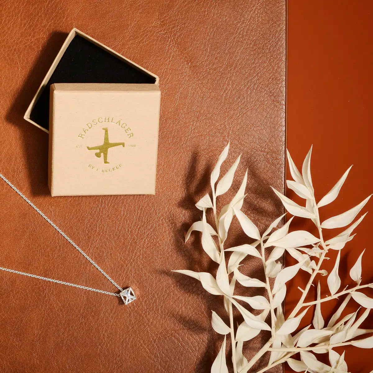 Herrenkette mit Radschläger-Würfel aus unserer Radschläger-Kollektion, 925er Sterlingsilber, poliert. Ein stilvolles Schmuckstück für den heimatverbundenen Düsseldorfer.