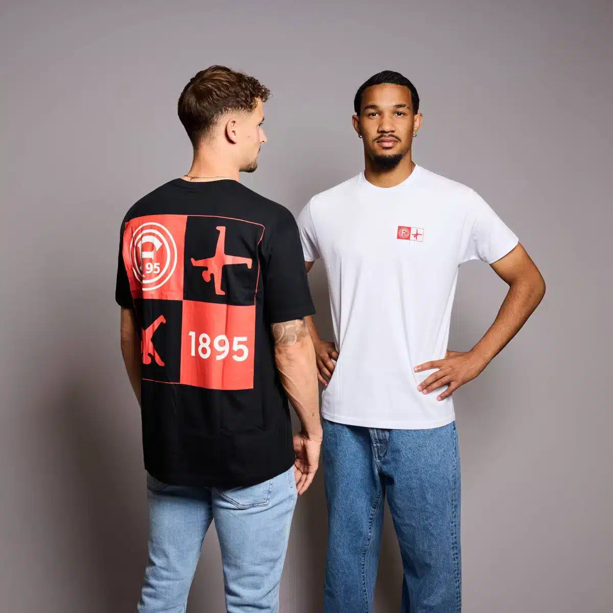 Dieses T-Shirt vereint zwei Düsseldorfer Legenden in einem kraftvollen Statement: Das Radschläger-Symbol und das traditionsreiche Fortuna-Logo. Klarer Print, ikonisches Design – auf der Brust dezent platziert, auf dem Rücken großformatig im Viererblock. Ein echtes Must-have für alle, die ihre Stadt und ihren Verein stolz tragen wollen.