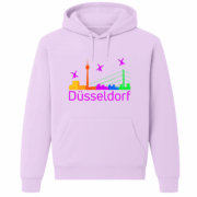 Entdecke unseren exklusiven Hoodie mit bunter Düsseldorf-Skyline und farbenfrohem Radschläger.