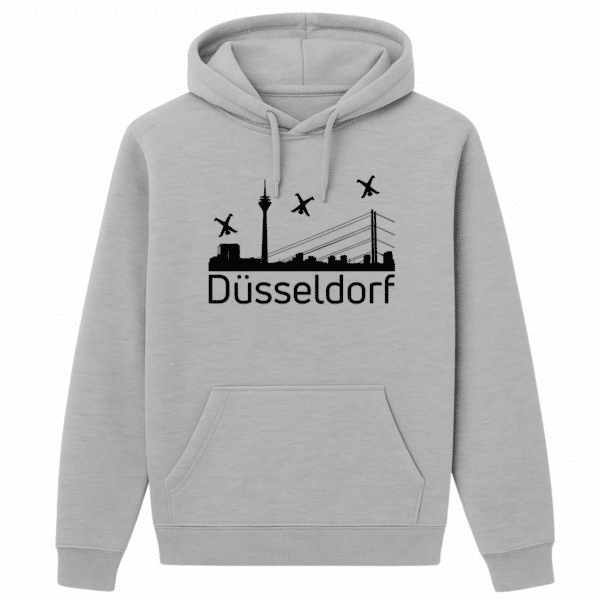 Das markante Design zeigt den Rheinturm, die Rheinbrücke und die typische Stadtsilhouette – ein Symbol für Heimatliebe und urbanen Lifestyle. Hochwertig verarbeitet und angenehm zu tragen, vereint dieser Hoodie Stil, Qualität und Verbundenheit.