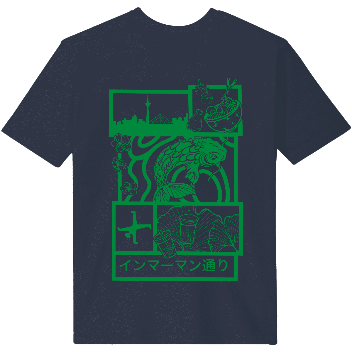 Zwischen Ramen, Rheinturm und Koi-Kraft – dieses Shirt ist eine Collage aus Momenten, Symbolen und Fernweh, mitten aus der Immermannstraße.