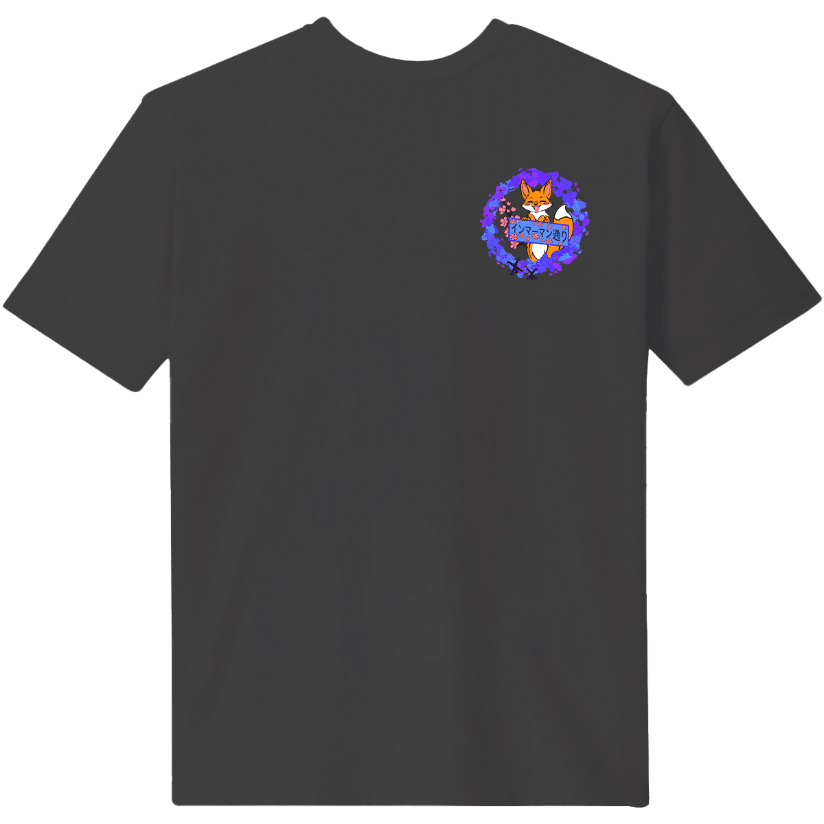 - Farbstarker Backprint und Chestprint mit Anime-Kitsune & japanischem Schriftzug